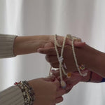Hechos con cordón de algodón y chaquiras de vidrio, y si eliges símbolos religiosos, se integran delicadamente en plata .925, cuidando cada detalle artesanal.