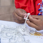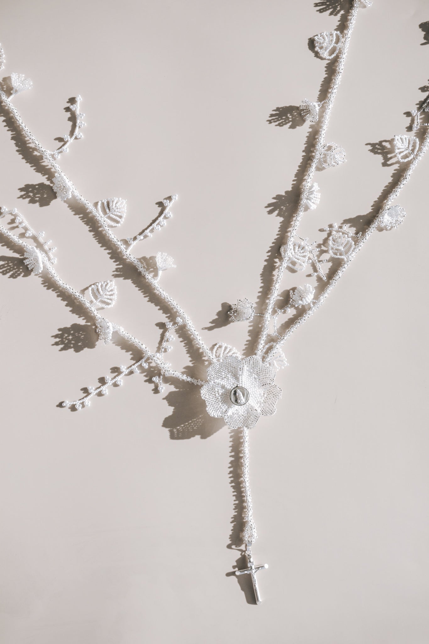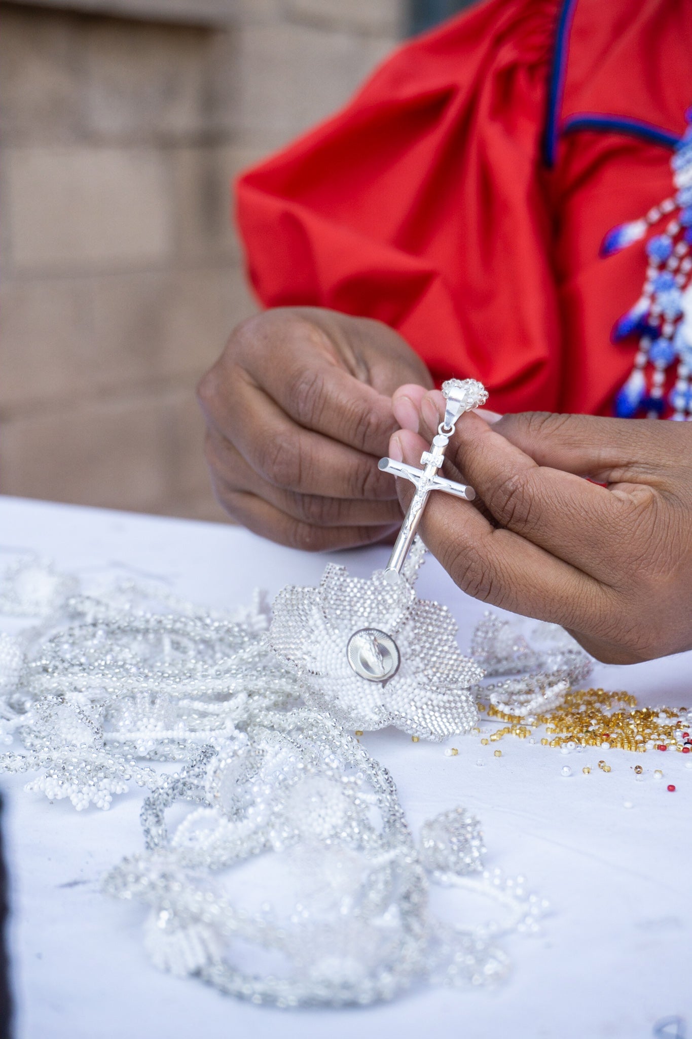 Hechos con cordón de algodón y chaquiras de vidrio, y si eliges símbolos religiosos, se integran delicadamente en plata .925, cuidando cada detalle artesanal.