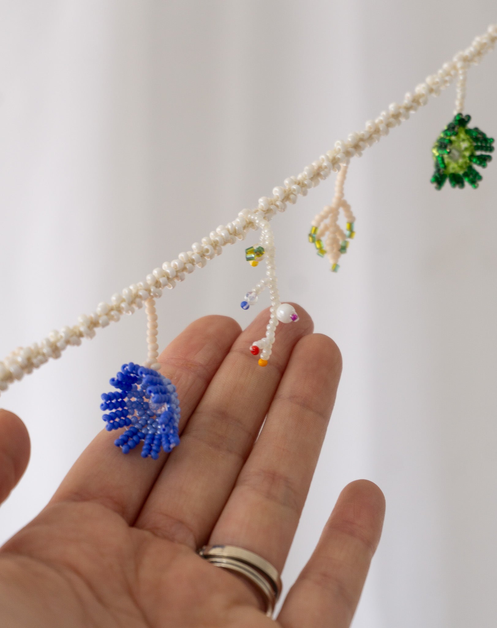 Hechos con cordón de algodón y chaquiras de vidrio, y si eliges símbolos religiosos, se integran delicadamente en plata .925, cuidando cada detalle artesanal.