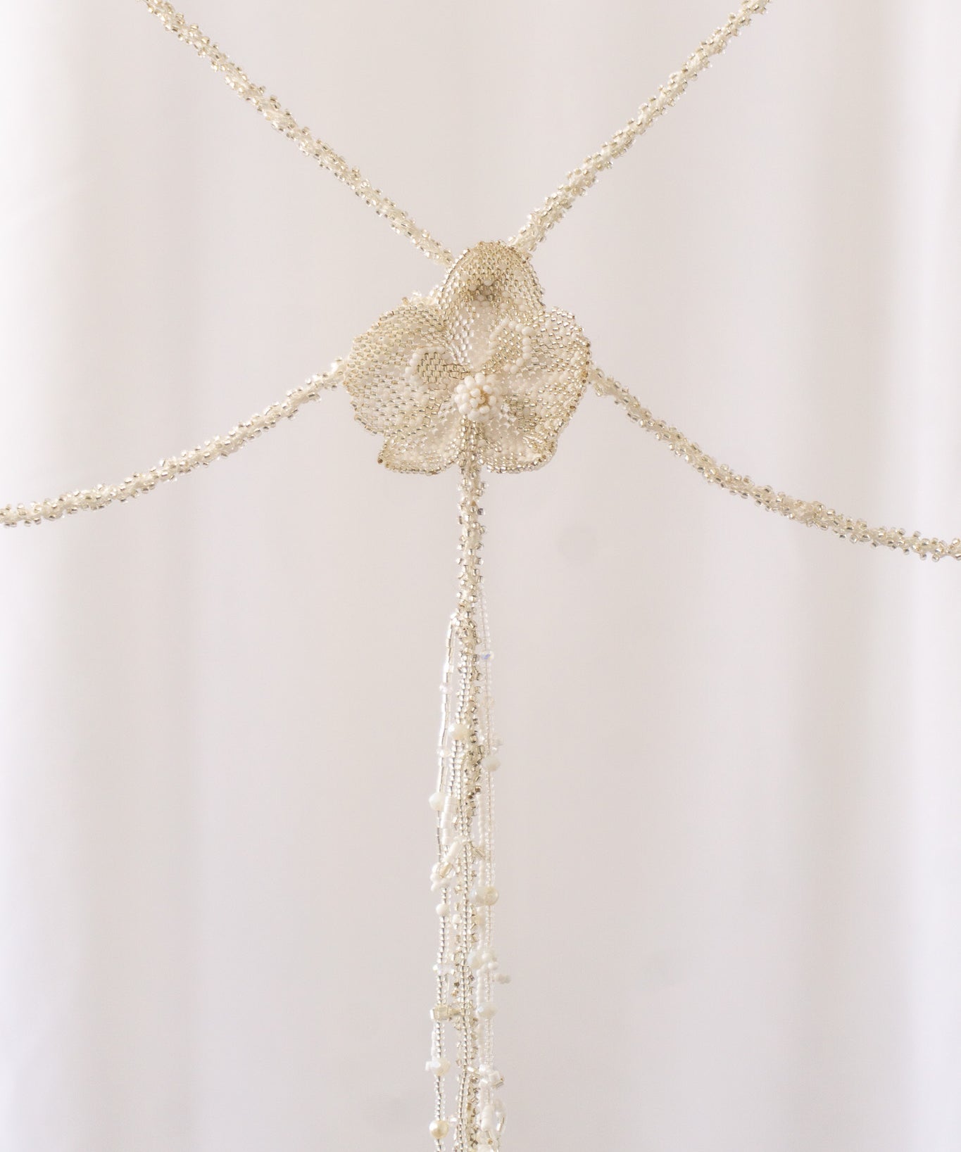Lazo Lily - Solo con cruz (perlas en el centro, no medalla) / Blanco con Plata