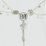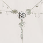 Este lazo presenta flores en 3D y detalles meticulosamente bordados a mano, mientras que el centro resalta con iniciales personalizadas en plata .925, capturando la esencia única de los novios.